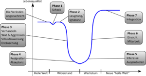 Die Reaktion auf unerwartete Ereignisse oder Veränderungen kann durch eine Veränderungskurve beschrieben werden. Das Modell lässt sich auf die verschiedensten Systeme wie Unternehmen, Organisationen oder Freunde und Familie anwenden. Es zeigt ein vereinfachtes Bild der komplexen Abläufe der emotionalen Reaktionen und ihrer Wirkungszusammenhänge auf und weist dadurch auf die Möglichkeit eines Handlungsrahmens hin. Dabei wird die typische Reaktion auf plötzliche und starke Veränderungen dargestellt und aufgezeigt wie darauf reagiert werden kann.